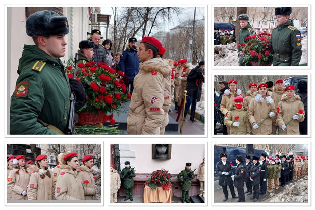 В городе Волхов Ленинградской области на здании школы, которую он окончил, и в Москве, на доме, в котором он жил, установлены мемориальные доски.
