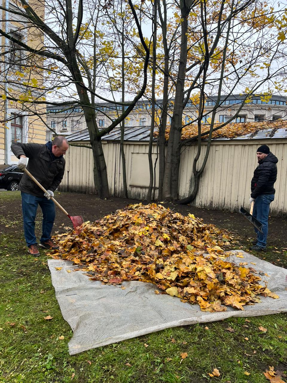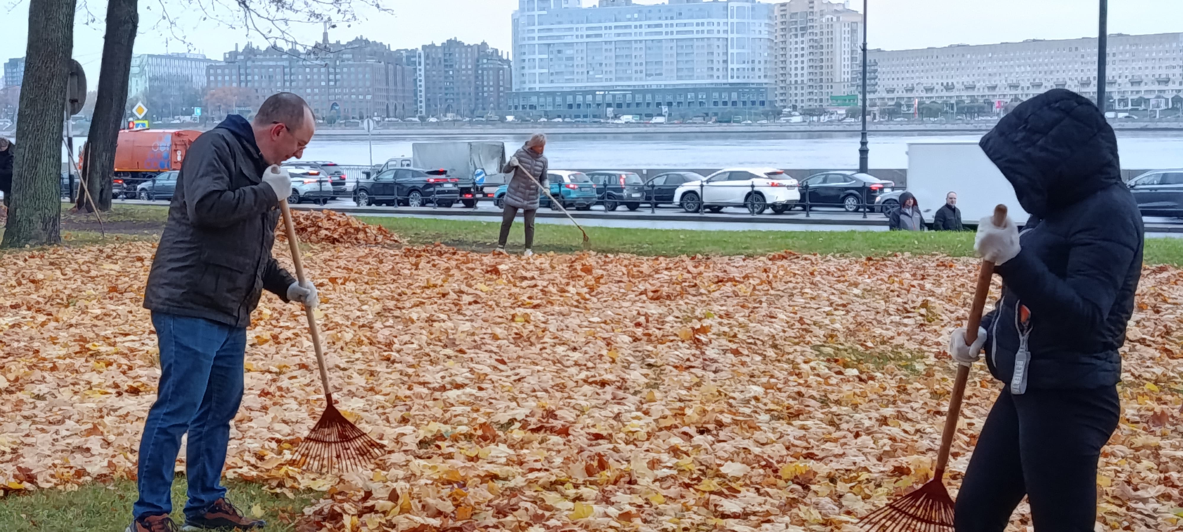 24 октября 2025 года работники Контрольного комитета Губернатора Ленинградской области приняли участие в субботнике в рамках осеннего месячника по благоустройству территории Санкт-Петербурга на территории, ограниченной садом Смольного собора, Смольной набережной.