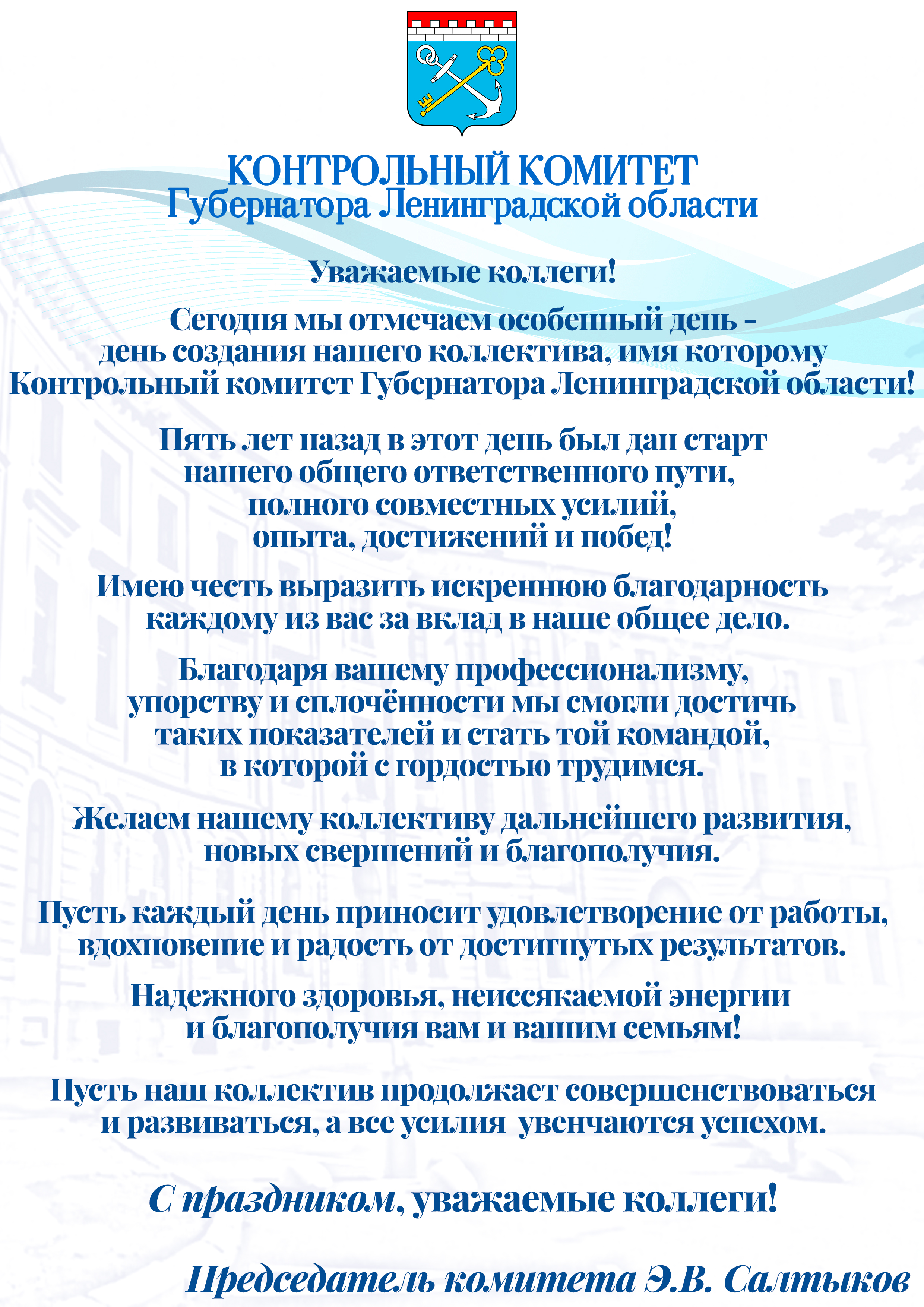 Контрольному комитету Губернатора Ленинградской области 5 лет!